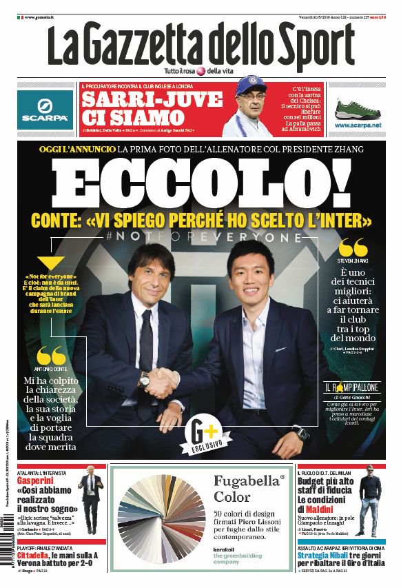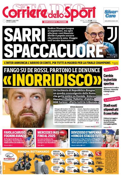 NewsCalcioRassegna Stampa Rassegna stampa del 31 maggio. Edicola sportiva nazionale By Giuseppe Sacco il Mag 31, 2019 - 07:30:16 0 Condividi Oggi in primo piano sui principali quotidiani sportivi nazionali Factory della Comunicazione 31MaggioRassegnaStampa 0 Condividi FacebookTwitterGoogle+ReddItWhatsAppPinterestE-mail