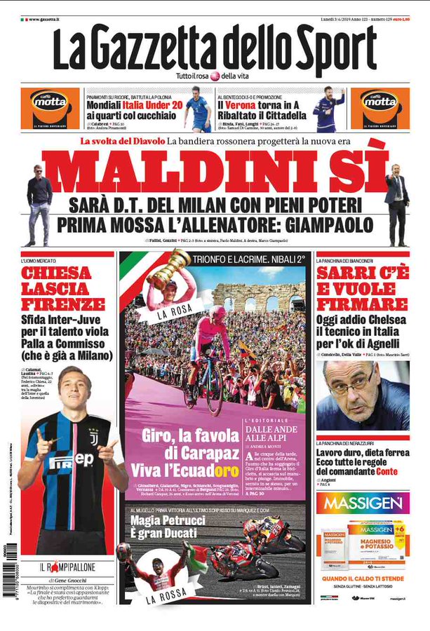 NewsCalcioRassegna Stampa Rassegna stampa del 3 giugno. L’edicola sportiva nazionale By Giuseppe Sacco il Giu 3, 2019 - 07:00:29 0 Condividi In primo piano dai principali quotidiani sportivi nazionali Factory della Comunicazione rassegna stampa 0 Condividi FacebookTwitterGoogle+ReddItWhatsAppPinterestE-mail