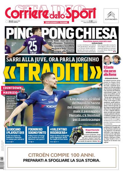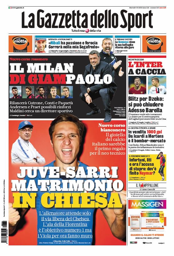 NewsCalcioIn Evidenza Rassegna stampa del 4 giugno. Edicola sportiva nazionale By Giuseppe Sacco il Giu 4, 2019 - 08:00:02 0 Condividi Le prime pagine di oggi dei principali quotidiani sportivi Factory della Comunicazione RassegnaSportivaStampa 0 Condividi FacebookTwitterGoogle+ReddItWhatsAppPinterestE-mail