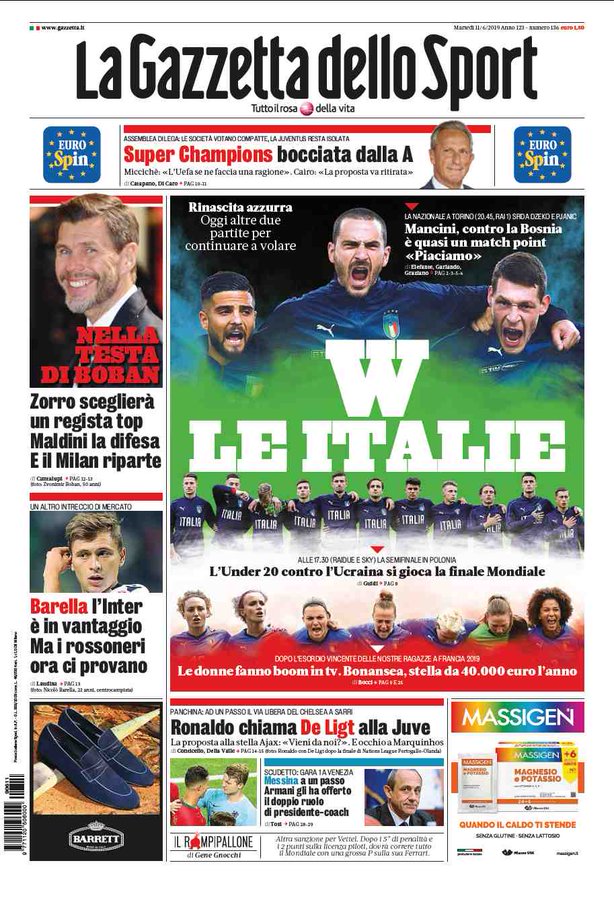 NewsCalcioIn Evidenza Rassegna stampa dell’ 11 giugno. Edicola sportiva nazionale By Giuseppe Sacco il Giu 11, 2019 - 07:00:44 0 Condividi Le prime pagine sportive messe in primo piano dai principali quotidiani sportivi Factory della Comunicazione PagineprimeRassegnaStampa 0 Condividi FacebookTwitterGoogle+ReddItWhatsAppPinterestE-mail