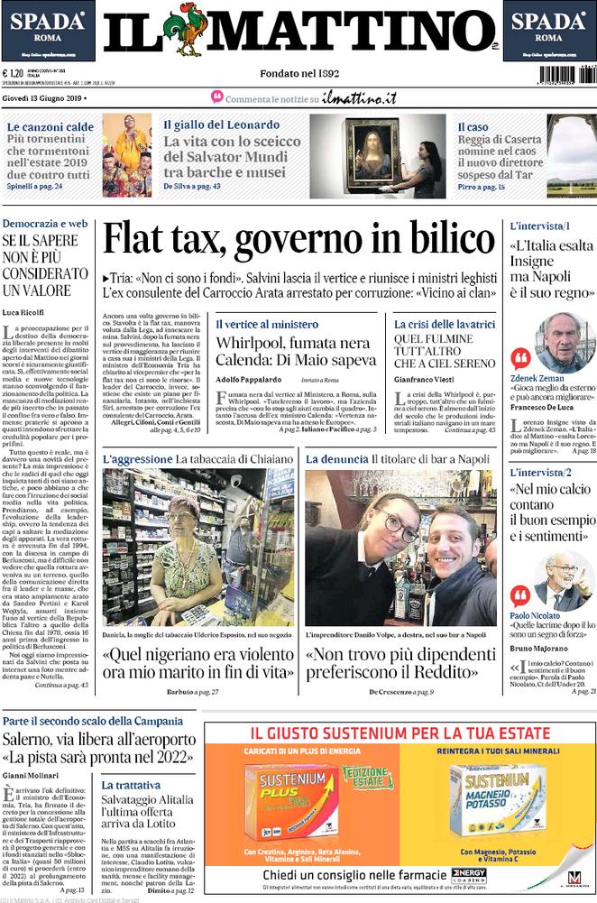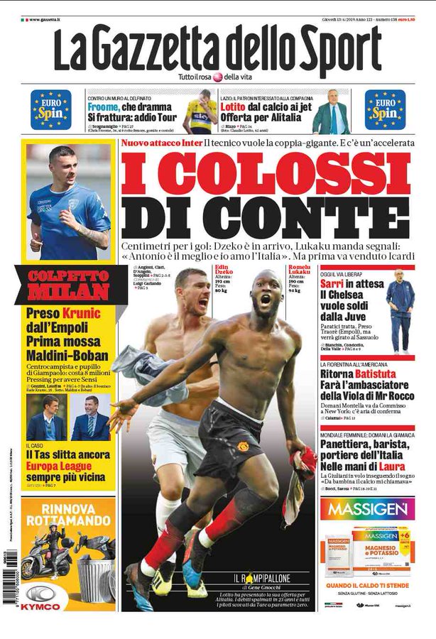 NewsCalcioIn Evidenza Rassegna stampa del 13 giugno. Edicola sportiva nazionale By Giuseppe Sacco il Giu 13, 2019 - 07:00:52 0 Condividi Oggi in primo piano sulle principali pagine sportive nazionali troviamo: Factory della Comunicazione RassegnaStampa 0 Condividi FacebookTwitterGoogle+ReddItWhatsAppPinterestE-mail