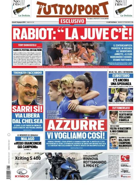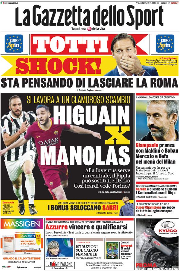 NewsCalcioIn Evidenza Rassegna stampa del 14 giugno. Edicola prime pagine By Giuseppe Sacco il Giu 14, 2019 - 07:00:27 0 Condividi In primo piano dalle principali pagine sportive nazionali Factory della Comunicazione RassegnaStampa 0 Condividi FacebookTwitterGoogle+ReddItWhatsAppPinterestE-mail