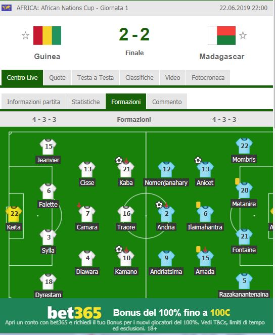Coppa D’Africa – Guinea-Madagascar (2-2). Diawara ha giocato tutta la gara