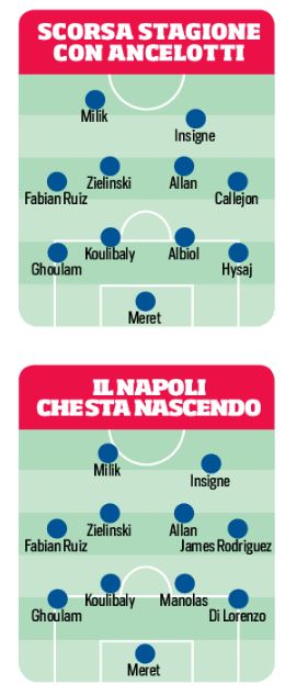 Le grandi manovre dell’attacco. Che poi, se vogliamo, saranno decisive da un punto di vista del modulo: arriva James? Perfetto: il tridente con Insigne e un centravanti sarebbe una soluzione a pennello; proprio come il tris di trequartisti alle spalle della punta. L’imbarazzo della scelta, alternative a gogò al 4-4-2.