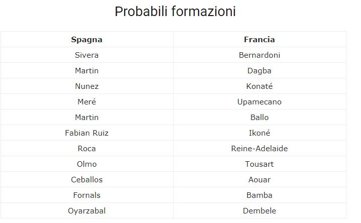 Al Dall’Ara di Bologna va in scena la semifinale degli Europei Under 21 tra Spagna e Francia, due nobili del calcio continentale e anche le due squadre che hanno tolto agli azzurri di Di Biagio un posto tra le migliori quattro del torneo. Gli iberici hanno vinto il girone dell’Italia battendo Belgio e Polonia, la Francia è arrivata seconda nel gruppo C con 7 punti grazie al prevedibile pareggio contro la Romania nell’ultima giornata prendendosi la qualificazione come migliore seconda dei gironi. Oltre a Fabian Ruiz, in avanti giocheranno Ceballos, Fornals e Olmo. La Francia punterà su Bamba e Dembele del Barcellona.