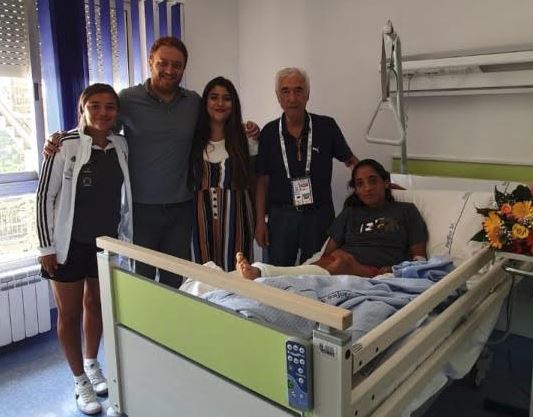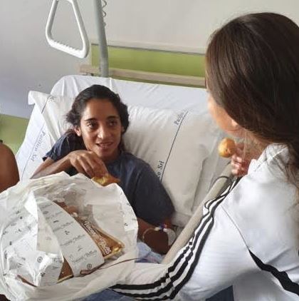 Una gradita sorpresa, infatti, ha addolcito stamattina la sua convalescenza all’ospedale San Giovanni di Dio e Ruggi d’Aragona di Salerno, dove è stata operata con successo dal prof. Nicola Maffulli: il consolato di Napoli del Messico, rappresentato da Amarillis Sanchez e Dario Sacco, ha portato all’atleta un bouquet di fiori e una guantiera di babà e sfogliatelle. Un pensiero che la calciatrice messicana ha particolarmente apprezzato.