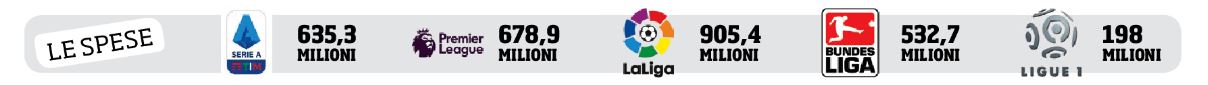 Mercato – Italia terza nelle spese, poverella la Ligue fanalino di coda