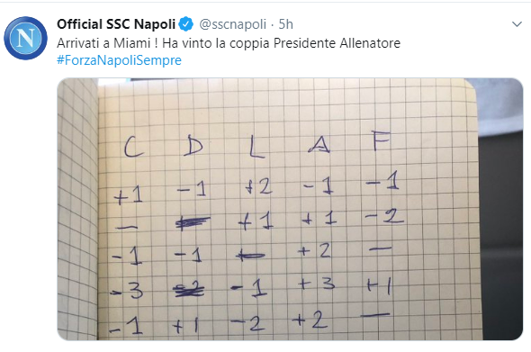 NewsCalcio Anche a tresette è una coppia vincente. Arrivo a Miami By Emilia Verde il Ago 6, 2019 - 08:20:00 0 Condividi Vincente anche fuori dal campo Factory della Comunicazione La coppia Ancelotti De Laurentiis 0 Condividi FacebookTwitterGoogle+ReddItWhatsAppPinterestE-mail