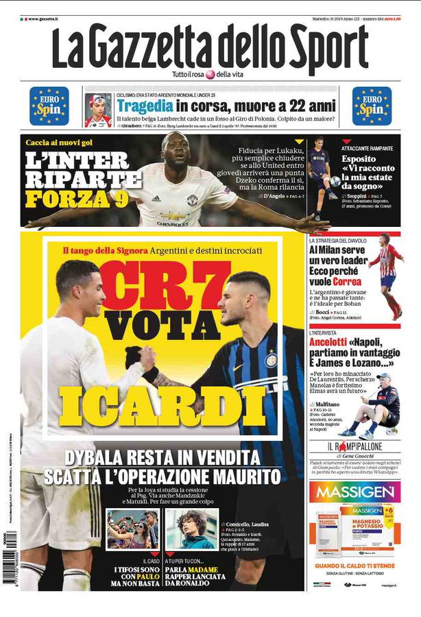 NewsCalcioIn Evidenza Rassegna stampa del 6 agosto. Edicola sportiva nazionale By Giuseppe Sacco il Ago 6, 2019 - 08:00:37 0 Condividi Queste le prime pagine di oggi Factory della Comunicazione RassegnaStampa 0 Condividi FacebookTwitterGoogle+ReddItWhatsAppPinterestE-mail