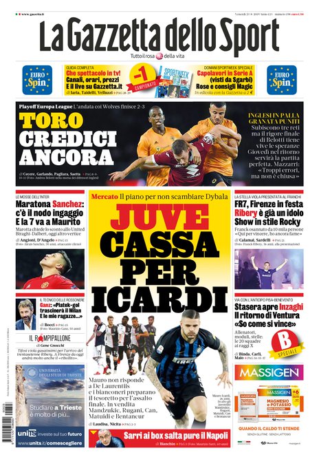 NewsCalcioIn Evidenza Rassegna stampa del 23 agosto. Edicola sportiva nazionale By Giuseppe Sacco il Ago 23, 2019 - 07:40:44 0 Condividi Dalle pagine sportive nazionali ecco in primo piano: Factory della Comunicazione RassegnaStampa 0 Condividi FacebookTwitterGoogle+ReddItWhatsAppPinterestE-mail