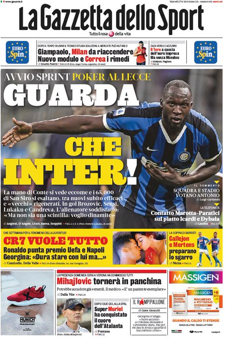 NewsCalcioIn Evidenza Edicola sportiva – Rassegna stampa del 27 agosto By Giuseppe Sacco il Ago 27, 2019 - 07:40:30 0 Condividi In primo piano dai principali quotidiani sportivi nazionali Factory della Comunicazione EdicolaRassegnaStampa 0 Condividi FacebookTwitterGoogle+ReddItWhatsAppPinterestE-mail