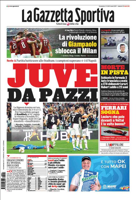 NewsCalcioIn Evidenza Rassegna stampa del 1° settembre. Edicola sportiva nazionale By Giuseppe Sacco il Set 1, 2019 - 08:00:18 0 Condividi In primo piano dai principali quotidiani sportivi nazionali Factory della Comunicazione RassegnaStampa 0 Condividi FacebookTwitterGoogle+ReddItWhatsAppPinterestE-mail