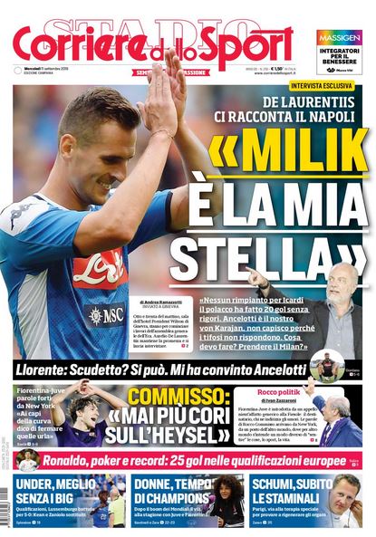 NewsCalcio Il CdS in prima pagina – DELa: “Milik è la mia stella” By Giuseppe Sacco il Set 11, 2019 - 07:56:00 0 Condividi Così apre oggi il Cds della Campania Factory della Comunicazione Milik 0 Condividi FacebookTwitterGoogle+ReddItWhatsAppPinterestE-mail