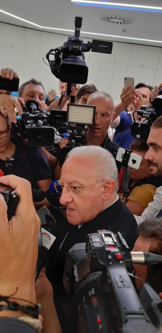 In corso il sopralluogo di De Laurentiis negli spogliatoi dello stadio San Paolo. Con il Patron azzurro presente anche il presidente della Regione Campania De Luca. Edo De Laurentiis ed Alessandro Formisano accompagnano il presidente del Napoli per vedere a che punto stanno gli spogliatoi dell’impianto di Fuorigrotta.