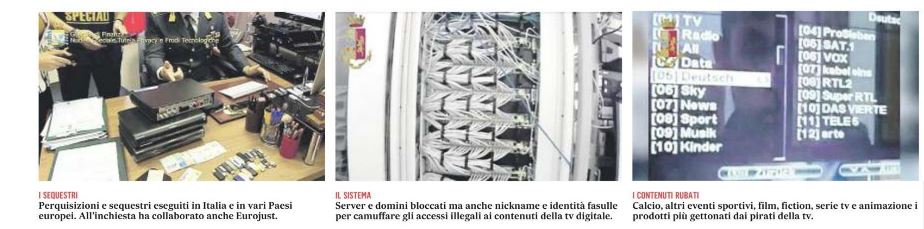 Pirateria televisiva, scoperta una colossale frode telematica organizzata a partire dal 2015, come confermano le indagini delle Procure di Roma e Napoli, ma anche di Eurojust (visto il carattere internazionale del giro di affari). Siamo all’evoluzione del napoletanissimo «pezzotto», come emerge dal decreto di sequestro firmato dal gip di Napoli della diffusa piattaforma streaming Xstream Codes, vera e propria cabina di regìa che irrogava i codici giusti in cambio di soldi. Venticinque indagati, bloccati conti correnti in mezza Europa. Arrestato Christos Papaoikonomu, ritenuto uno degli inventori e dei gestore della piattaforma, bloccato a Salonicco dalla guardia di finanza italiana e dalla polizia greca: aveva con sé 110mila euro in contanti. Fonte: Il Mattino