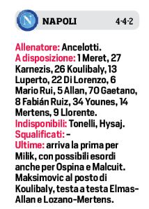 Probabili debutti anche per Ospina e Malcuit per gli azzurri