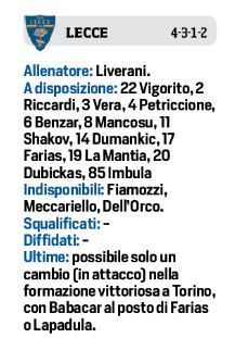Domenica pomeriggio allo stadio “Via del Mare”, con fischio d’inizio alle ore 15,00, i padroni di casa del Lecce affronteranno il Napoli in una sfida davvero entusiasmante. I salentini vogliono confermarsi davanti al loro pubblico dopo il successo esterno contro il Torino e Liverani per la gara contro gli azzurri manderà in campo, secondo il CdS, Babacar e Lapadula in attacco con Falco alle loro spalle. In dubbio Meccariello e Dell’Orco. Carlo Ancelotti invece farà ampio turnover con Ospina, Malcuit, Maksimovic, Ghoulam, Elmas, Zielinski e il probabile debutto stagionale in attacco di Milik con Lozano al suo fianco. Il Napoli vorrà confermarsi dopo la splendida vittoria di Champions League contro il Liverpool e restare in scia alle prime posizioni in classifica.