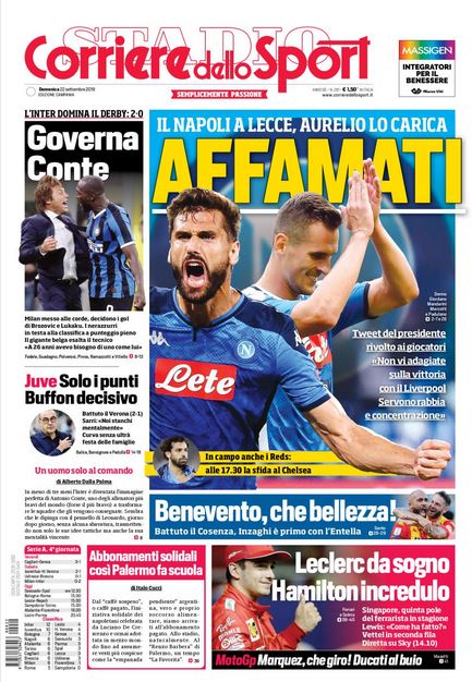 NewsCalcio Edicola dello sport. Rassegna stampa del 22 settembre By Giuseppe Sacco il Set 22, 2019 - 07:20:10 0 Condividi Le prime pagine dai principali quotidiani sportivi nazionali Factory della Comunicazione Rassegna 0 Condividi FacebookTwitterGoogle+ReddItWhatsAppPinterestE-mail