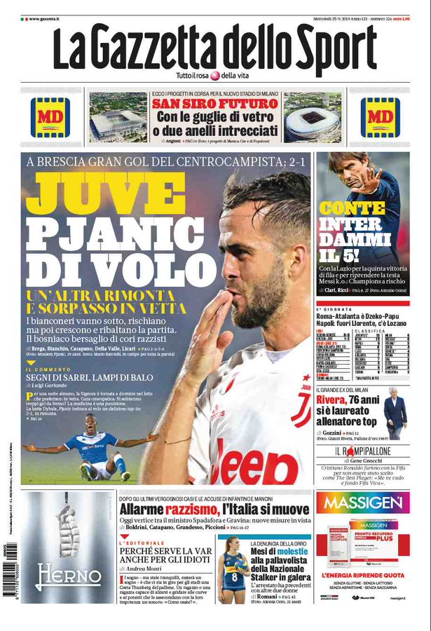 NewsCalcioRassegna Stampa Rassegna stampa del 25 settembre. Edicola dello sport By Giuseppe Sacco il Set 25, 2019 - 07:00:12 0 Condividi In primo piano dalle principali testate sportive nazionali Factory della Comunicazione Rassegna 0 Condividi FacebookTwitterGoogle+ReddItWhatsAppPinterestE-mail