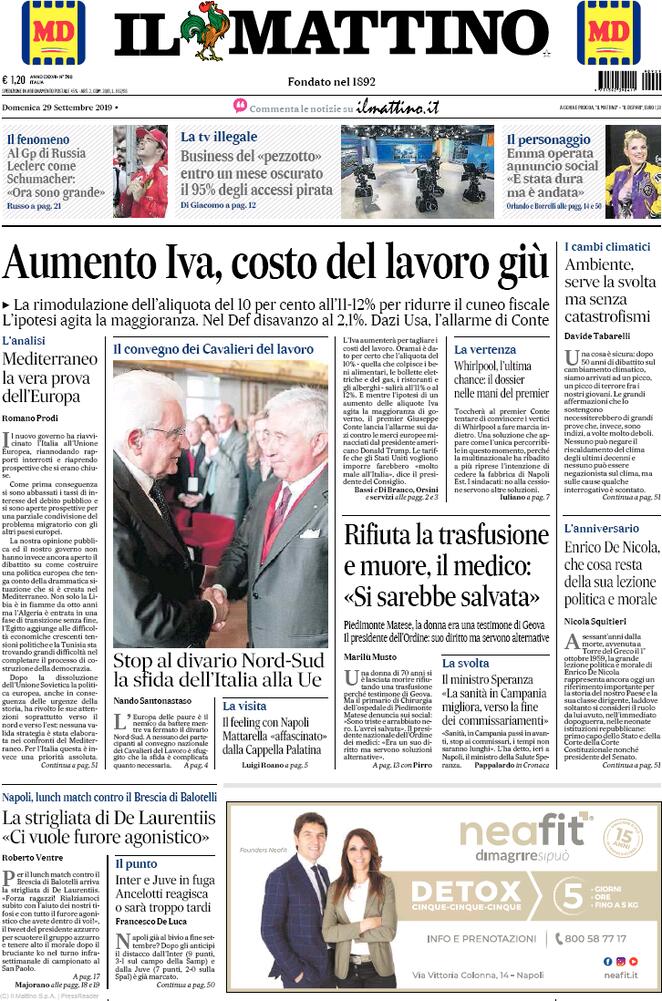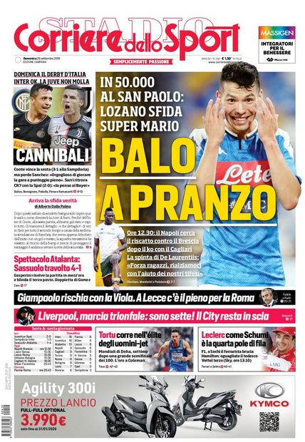 NewsCalcioIn Evidenza Rassegna stampa del 29 settembre – Edicola sportiva nazionale By Giuseppe Sacco il Set 29, 2019 - 07:20:16 0 Condividi Oggi in primo piano sulle principali pagine sportive nazionali Factory della Comunicazione RassegnaStampa 0 Condividi FacebookTwitterGoogle+ReddItWhatsAppPinterestE-mail