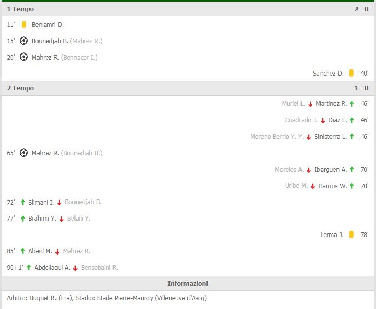 Amichevole – (Video): Algeria/Colombia (3-0) Ospina in campo tutta la gara