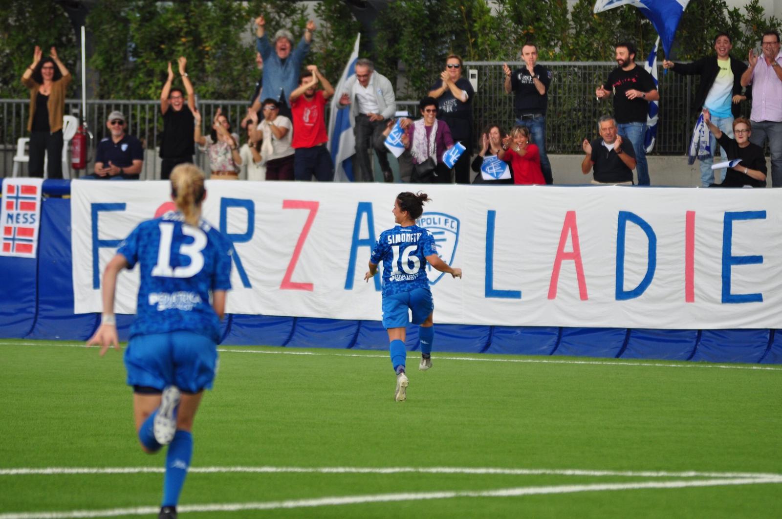 In questi primi mesi all’Empoli Ladies, cosa ti ha colpito della rosa delle toscane in campionato? “Siamo una squadra mista fatte di giovani e di elementi di esperienza, però con tanta voglia di metterci in evidenza nella massima serie. Se si esclude il primo tempo contro l’A.s. Roma, squadra più forte vista fino ad ora sul piano del gioco, le altre ce la siamo giocata alla pari, peccato averle perse. Contente per aver vinto contro l’Orobica, visto che era per noi uno scontro diretto e ottenerlo in questo modo ci ha dato una grande carica”.