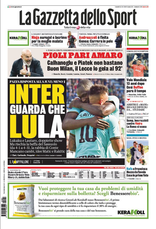 NewsIn EvidenzaRassegna Stampa Rassegna stampa del 21 ottobre. Prime pagine sportive By Giuseppe Sacco il Ott 21, 2019 - 07:23:19 0 Condividi Queste le pagine sportive in primo piano Factory della Comunicazione CalcioEdicolaRassegnaStampa 0 Condividi FacebookTwitterGoogle+ReddItWhatsAppPinterestE-mail