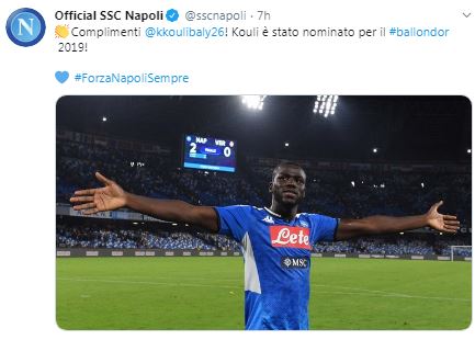 Anche Kouilibaly è tra i trenta candidati al ballondor 2019. La Ssc Napoli si complimenta con Kalidou.