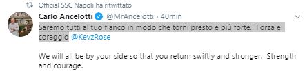 Su twitter le parole di mister Ancelotti per il “dramma” di Malcuit: