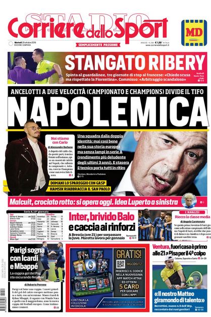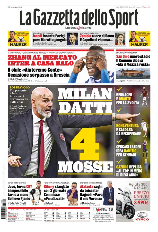 NewsCalcioIn Evidenza Rassegna stampa del 29 ottobre. Edicola sportiva nazionale By Giuseppe Sacco il Ott 29, 2019 - 07:18:38 0 Condividi Ecco dai principali quotidiani sportivi, le prime pagine Factory della Comunicazione CalcioEdicolaPagineprime 0 Condividi FacebookTwitterGoogle+ReddItWhatsAppPinterestE-mail
