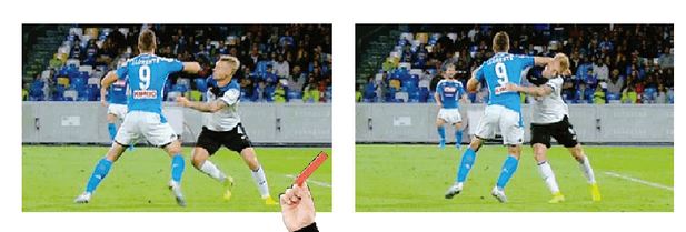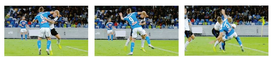 Fotogramma Una moviola, fotogramma per fotogramma: Kjeaer si dispone spalle al pallone (dunque in posizione potenzialmente punibile), pronto a buttarsi su Llorente che, per prendere posizione, occupa lo spazio allargando il gomito. Il placcaggio che ne deriva è clamoroso. E falloso: