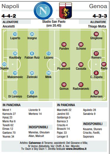 Delicatissima gara questa sera al San Paolo, sia IL Napoli che il Genoa con obiettivi diversi si giocano il futuro. Il Mattino prova a fare la sua formazione: