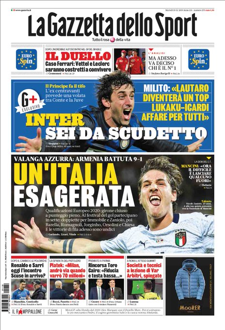 NewsCalcioRassegna Stampa Rassegna stampa del 19 novembre. Edicola sportiva nazionale By Giuseppe Sacco il Nov 19, 2019 - 07:40:28 0 Condividi Rassegna stampa. Dai principali giornali sportivi nazionali ecco in primo piano: Factory della Comunicazione CalcioNapoliRassegnaStampa 0 Condividi FacebookTwitterGoogle+ReddItWhatsAppPinterestE-mail