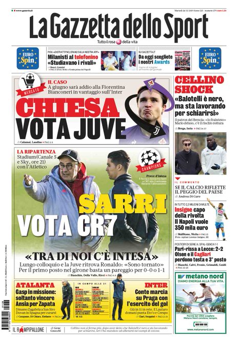 NewsCalcioIn Evidenza Rassegna stampa del 26 novembre. Edicola delle prime pagine By Giuseppe Sacco il Nov 26, 2019 - 07:40:18 0 Condividi Rassegna stampa – In primo piano dai principali quotidiani sportivi Factory della Comunicazione CalcioNapoliPaginePriem 0 Condividi FacebookTwitterGoogle+ReddItWhatsAppPinterestE-mail