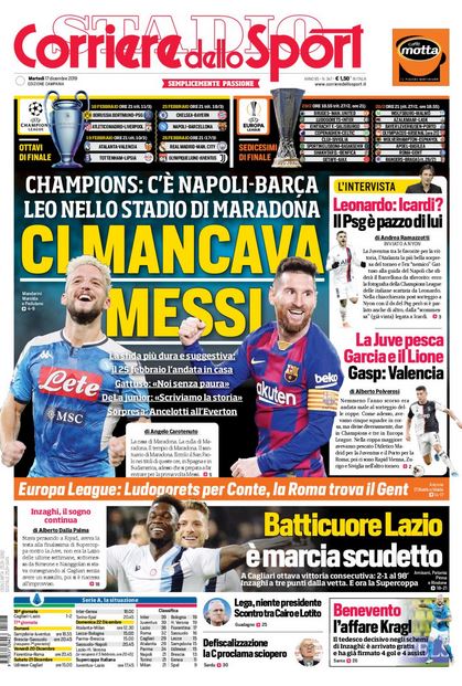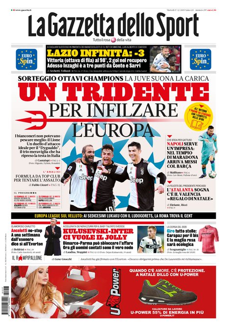 Rassegna stampa del 17 dicembre – Prime pagine sportive nazionali