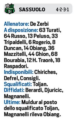 [Grafico] Sassuolo/Napoli, due dubbi per De Zerbi. Callejon per Gattuso