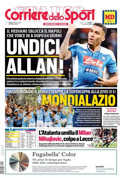 NewsCalcioIn Evidenza Rassegna stampa del 23 dicembre – Edicola sportiva nazionale By Giuseppe Sacco il Dic 23, 2019 - 07:40:58 0 Condividi La rassegna sportiva nazionale in primo piano Factory della Comunicazione CalcioEdicolaNapoliRassegna 0 Condividi FacebookTwitterGoogle+ReddItWhatsAppPinterestE-mail
