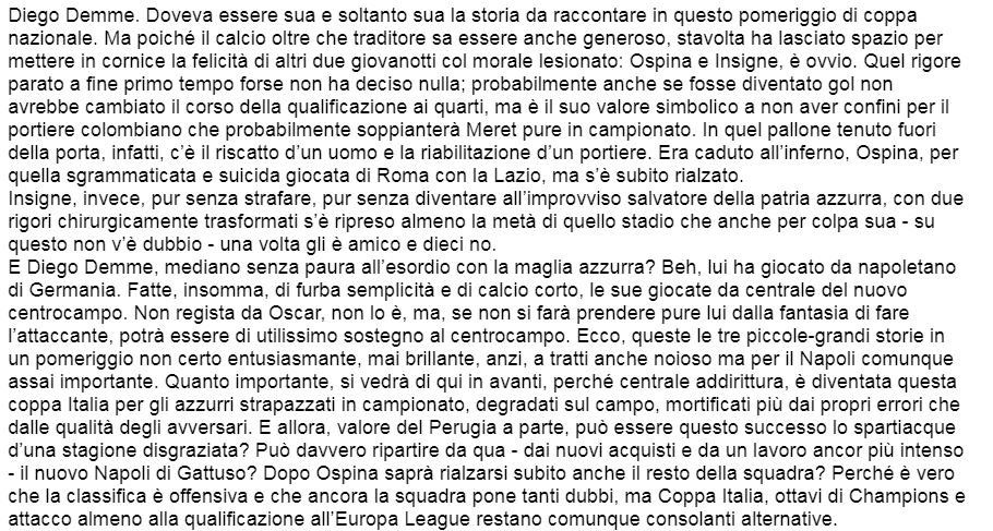 Secondo Ciccio Marolda Insigne e Ospina ne son fuori e lo scrive nella sua consueta opinione sul CdS: