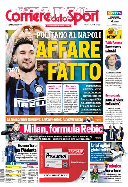 Senza categoria Rassegna stampa del 25 gennaio. Prime pagine sportive nazionali By Giuseppe Sacco il Gen 25, 2020 - 07:40:35 0 Condividi Dalla rassegna stampa odierna ecco in primo piano Factory della Comunicazione CalcioNapoliRassegnaStampa 0 Condividi FacebookTwitterGoogle+ReddItWhatsAppPinterestE-mail