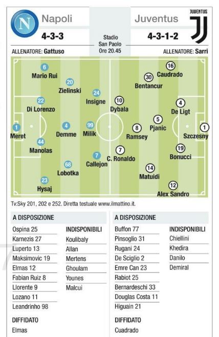 NewsCalcioRassegna Stampa Napoli/Juve – Il Mattino dà le sue possibili formazioni [Grafico] By Giuseppe Sacco il Gen 26, 2020 - 08:30:11 0 Condividi Un dubbio in porta per il Napoli, nella Juve ballottaggio Dybala/Higuain Factory della Comunicazione CalcioFormazioniJuveNapoli 0 Condividi FacebookTwitterGoogle+ReddItWhatsAppPinterestE-mail