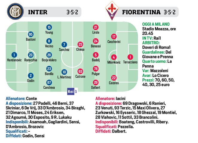 Dalla gara di questa sera Inter/Fiorentina esce chi incontrerà il Napoli in semifinale. Se vincono i nerazzurri sarà la prima Inter/Napoli, se la Fiorentina sarà la prima a Napoli
