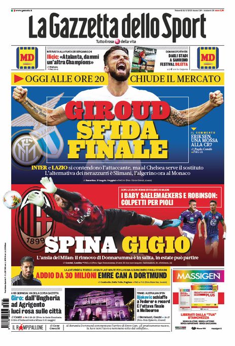 NewsCalcioIn Evidenza Rassegna stampa del 31 gennaio. Prime pagine sportive nazionali By Giuseppe Sacco il Gen 31, 2020 - 08:15:34 0 Condividi Dalla rassegna stampa di oggi 31 gennaio, ecco in primo piano: Factory della Comunicazione CalcioNapoliPagineprime 0 Condividi FacebookTwitterGoogle+ReddItWhatsAppPinterestE-mail