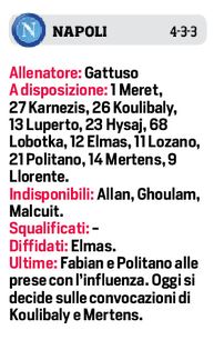 [Grafico] Sampdoria/Napoli, recupero a centrocampo per Ranieri. Oggi si deciderà il destino di K2 e Mertens