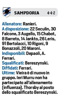 Lunedì sera alle ore 20,45 allo stadio “Marassi” di Genova, i padroni di casa della Sampdoria affronteranno il Napoli per la terza giornata di ritorno. Per l’allenatore dei liguri Claudio Ranieri arrivano buone notizie dall’infermeria, potrà contare sul centrocampista Vieira che rientrato in gruppo, out ancora l’ex Chievo Verona Depaoli. In attacco il duo Quagliarella-Gabbiadini. Per i partenopei oggi è il giorno decisivo per stabilire la disponibilità dei vari Mertens e Koulibaly per la sfida di Genova. Ieri postumi influenzali per Fabian Ruiz e Politano, quindi in dubbio per lunedì sera.