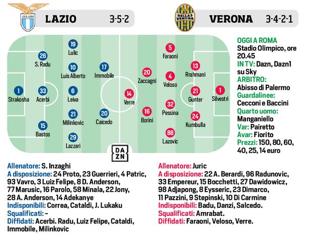 La Lazio questa sera ha l’opportunità di rinforzare il 2° posto a due punti dalla Juve, il Verona la possibilità di restare in zona EL. Sarà una bella gara