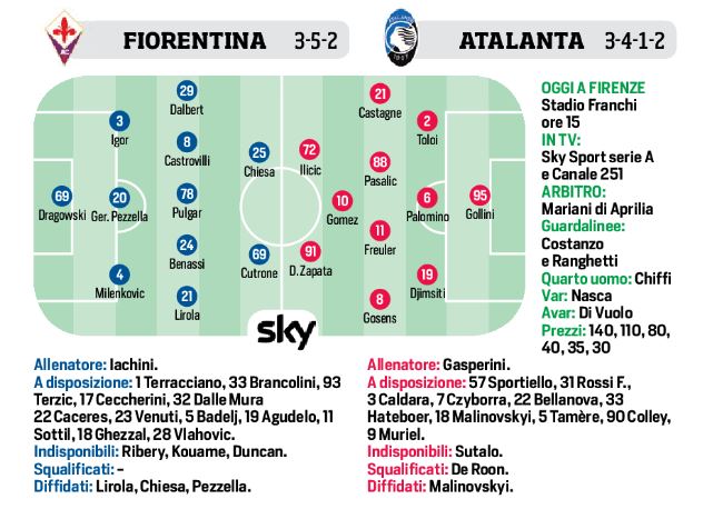 La Fiorentina a caccia di una vittoria e l’Atalanta che vuol restare al vertice, sarà una bella gara. Le possibili formazioni: