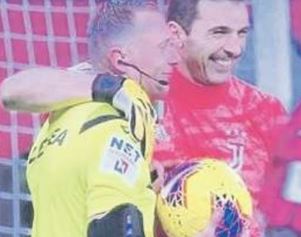 match Milan-Juventus, e quella, quasi una fotocopia, che risale a due anni fa, precisamente a domenica 22 gennaio 2017, scattata questa volta allo Stadium di Torino ma sempre al termine di una partita, nel caso specifico una Juventus-Lazio che vide i bianconeri trionfare per due a zero. Due sorrisoni, due arbitri arpionati in un abbraccio, una sola evidente didascalia che suona più o meno tutto-è-bene-quel-che-finisce-bene. Certo, per avere una prova due indizi non bastano, Agata Christie dice che ce ne vogliono almeno tre e perciò, mettetevi l’anima in pace, nessun giudice sportivo o magistrato ordinario ma neanche il più pervicace dietrologo saprebbe che farsene, di questi scatti colti al volo da fotografi chissà se malevoli chissà se compiaciuti, perché poi vedere persone sorridere fa sempre piacere, fa sempre bene al cuore. Ah ecco, dicevamo il cuore: la terza fotografia, per la verità, esiste, ed è quella che ritrae ancora una volta il nostro mitico portierone in un altro post partita. Quello, indimenticabile, del Bernabeu. Era l’11 aprile 2018 e gli strisciati avevano compiuto l’incredibile impresa di rimontare tre gol al Real Madrid in casa loro. Poi però era arrivato l’arbitro guastafeste a rovinare tutto, assegnando ai Blancos un rigore a tempo praticamente scaduto, e addio sogni di gloria, addio corsa alla Champions. Quella volta, per Gigi l’amicone non furono abbracci ma lacrime e stridore di denti: dovette subire persino l’onta del rosso, l’umiliazione dell’espulsione alla
