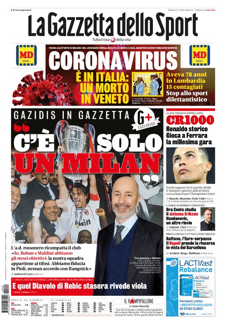 CalcioNewsRassegna Stampa Rassegna stampa del 22 febbraio. Prime pagine sportive nazionali By Giuseppe Sacco il Feb 22, 2020 - 07:30:18 0 Condividi Dalla rassegna di oggi ecco in primo piano le principali pagine sportive nazionali Factory della Comunicazione PagineprimeRassegnaStampa 0 Condividi FacebookTwitterGoogle+ReddItWhatsAppPinterestE-mail