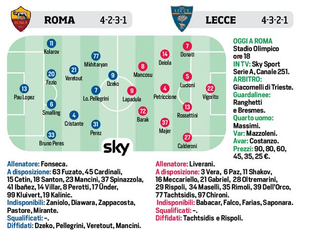 NewsCalcioRassegna Stampa Ore 18,00: Serie A – Roma/Lecce, le probabili formazioni del CdS By Gabriella Calabrese il Feb 23, 2020 - 15:20:31 0 Condividi Le possibili formazioni di Lecce e Roma nella gara delle ore 15 Factory della Comunicazione FormazioniLecceRoma 0 Condividi FacebookTwitterGoogle+ReddItWhatsAppPinterestE-mail