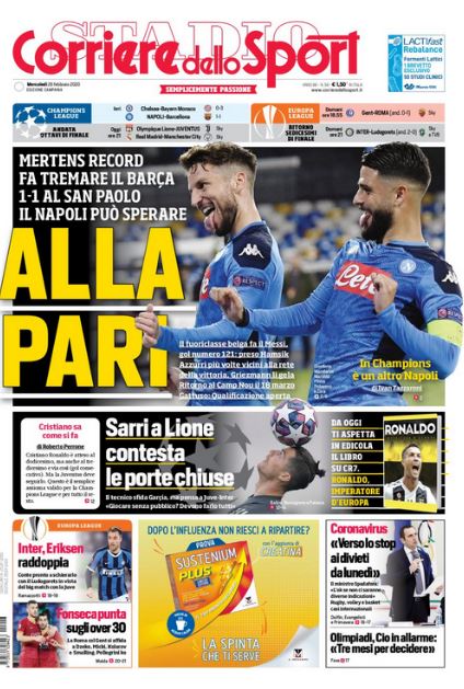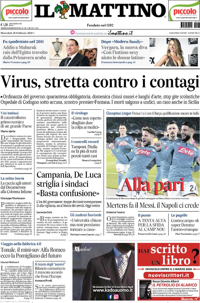 NewsCalcioRassegna Stampa Rassegna stampa del 26 febbraio. Le prime pagine sportive By Giuseppe Sacco il Feb 26, 2020 - 07:30:54 0 Condividi Factory della Comunicazione La rassegna del 26 propone queste prime pagine CalcioNapoliPagineprime 0 Condividi FacebookTwitterGoogle+ReddItWhatsAppPinterestE-mail